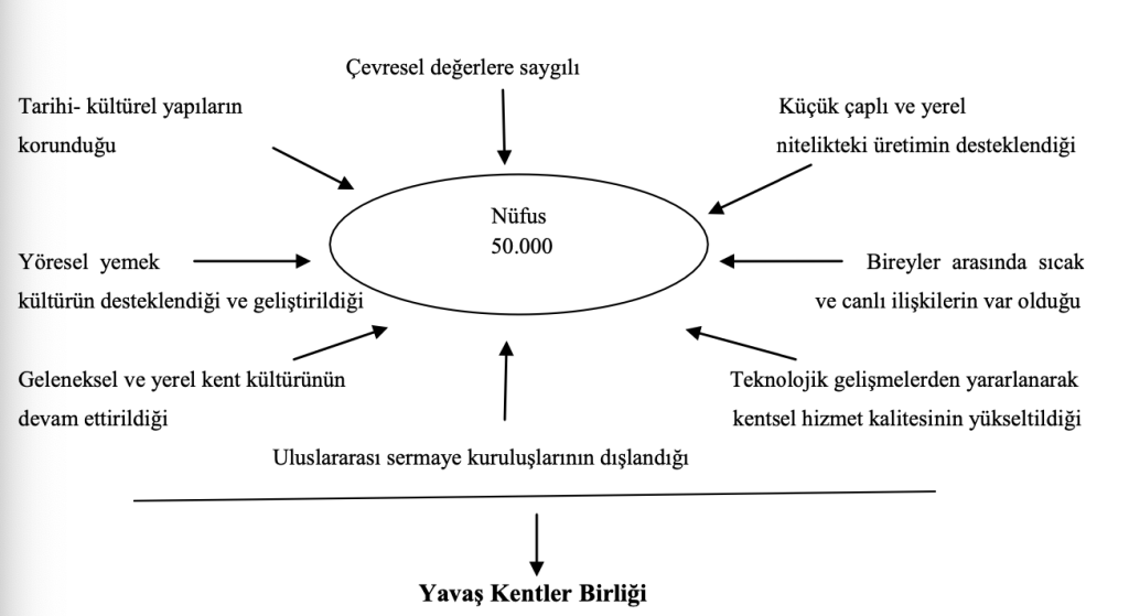 Yavaş Kentler Birliğinin yönergelerine göre her şeyin en öncesinde bir kente 50.000’den fazla insan sığdırmak için olağanüstü bir çabaya girmeyeceğiz. Olağanüstü çabaya girmesek dahi sadece 50.000 insanı o kentte tutmak adına çabada bulunacağız.