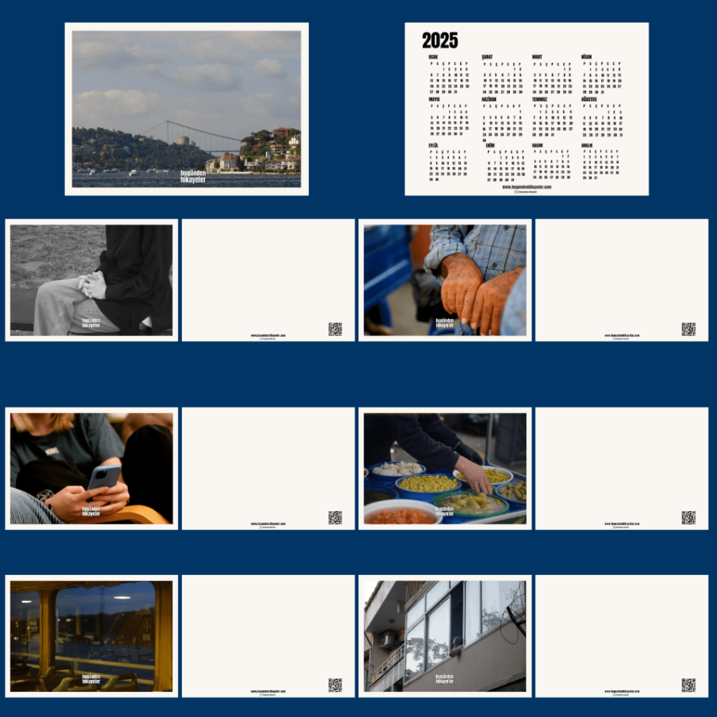 Bu kartpostal seti sana küçük hatırlatmalarla eşlik etmek için tasarlandı. Setin içindeki 7 kart mevcut. Bunlardan biri yıllık takvim. Bu takvim, sana yıl boyunca rehberlik etsin ve güzel anlarını hatırlatsın. Diğer kartlar ise 2024 yılına ait “Bugünden Hİkayeler” bölümlerinden birer kare. Hayatına dokunan detayları, minik anları görmen ve onlara değer katman için tasarlandı.